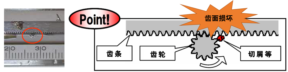 如果切屑或灰塵等異物侵入了尺架內(nèi)部,在這種狀態(tài)下強(qiáng)行滑動(dòng)的話,可能會(huì)損壞尺架并導(dǎo)致精度和零點(diǎn)出現(xiàn)設(shè)備故障。所以要小心使用哦!