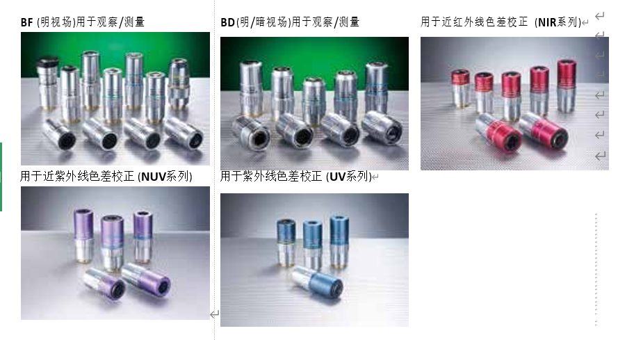 璃觀察真空爐內的玻璃厚度校正透鏡G Plan Apo系列等,近紅外~可視~紫外的各種波長范圍的物鏡種類。